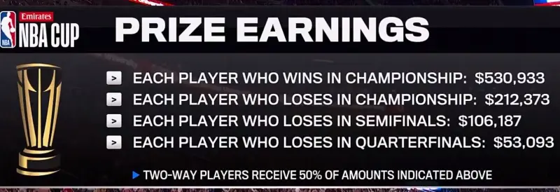 根据赛事规则,尼克斯各名球员将获得税前530933美元的奖金。
